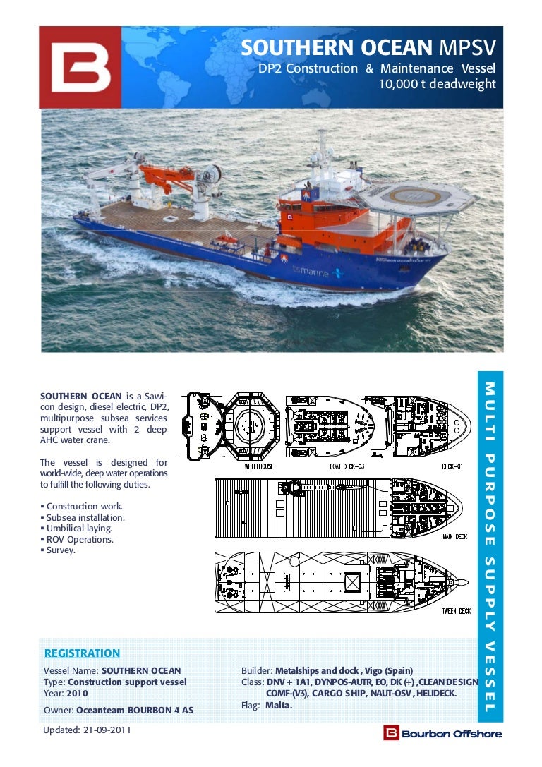 The candidate must hold master's unlimited license. 90 days first contract / next 70 days salary: The class of mpsv06 ships are the biggest ones but all the classes are relatively large rescuer and salvage vessels. Seaman book and log book copies of all pages with details of sea service evidence of each vessel as details. Versatile mpsv imr dp2 rov vessel available for charter or for sale. I understand and accept conditions of this vacancy! Multipurpose multipurpose tug obo carrier 4 ocean going tug oceanographic vessel office offshore / diving support vessel offshore. Oceanteam bourbon 4 as updated: Vessel is of high standards and capapble to perform all tasks within its scope. Mpsv dp2 duration of contract: Please like and share with your friends Latest vacancies for ahts vessel , mpsv vessel and psv vessel. In total 2 vessels of this project mpsv06 are constructed: